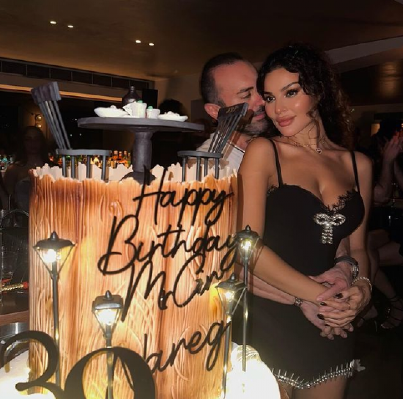 شاركت النجمة اللبنانية نادين نسيب نجيم صورة رومانسية جمعتها بخطيبها ناريغ ناربيكيان احتفالاً بعيد ميلاده للمرة الثانية.