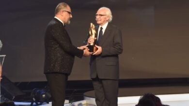 زكريا فحّام يسلم درع الزمن الجميل الى الممثل السوري حسام تحسين بيك